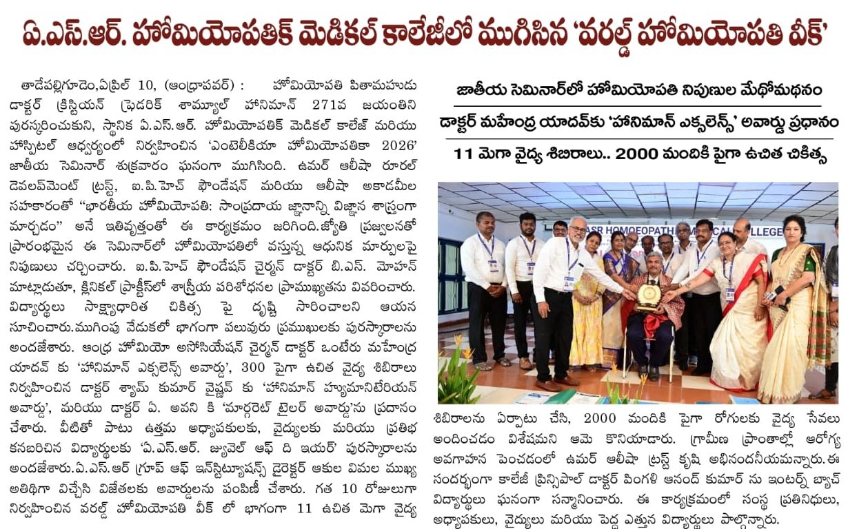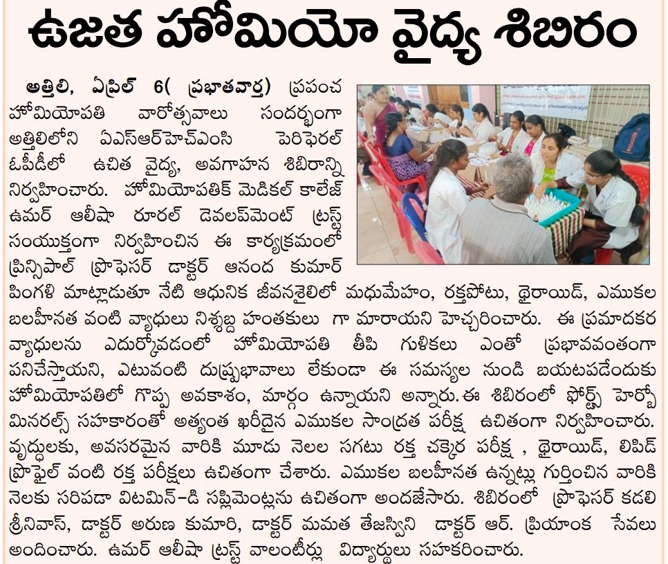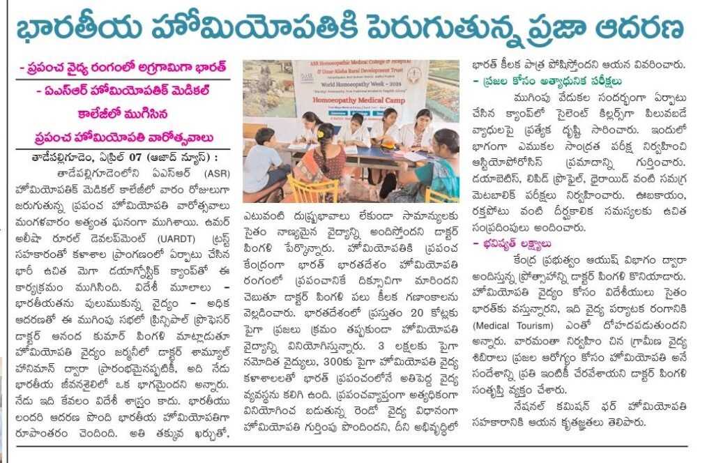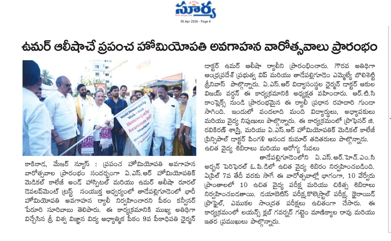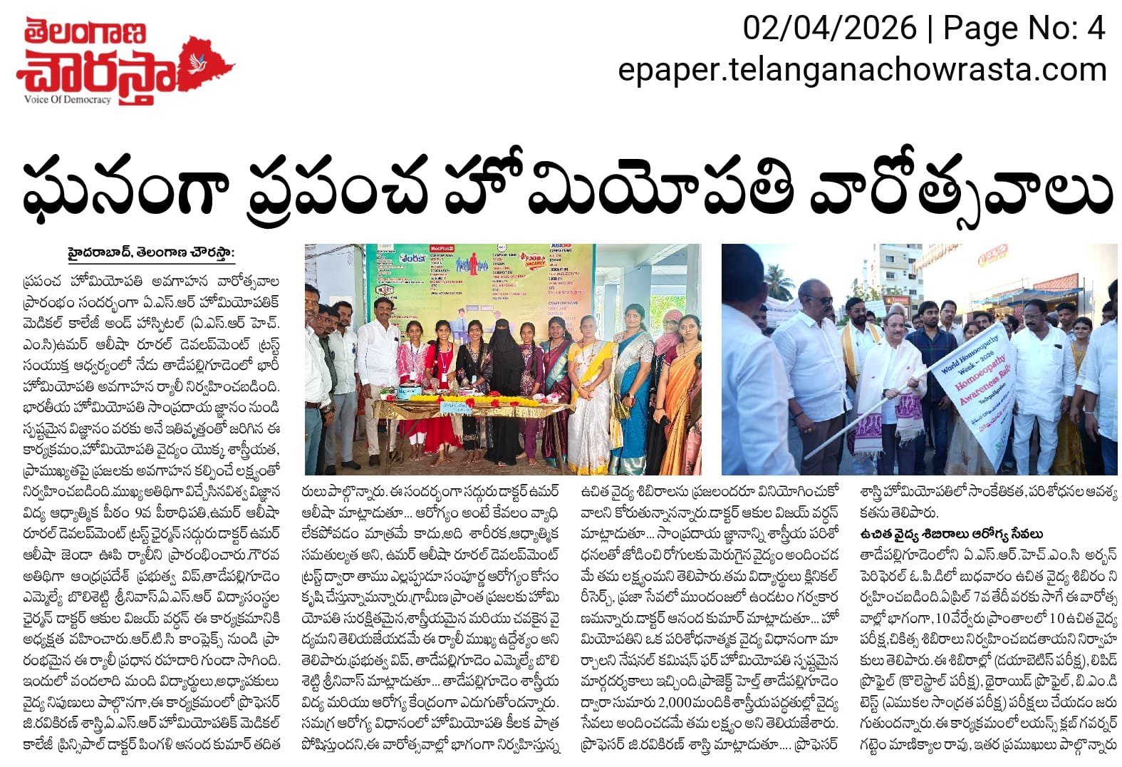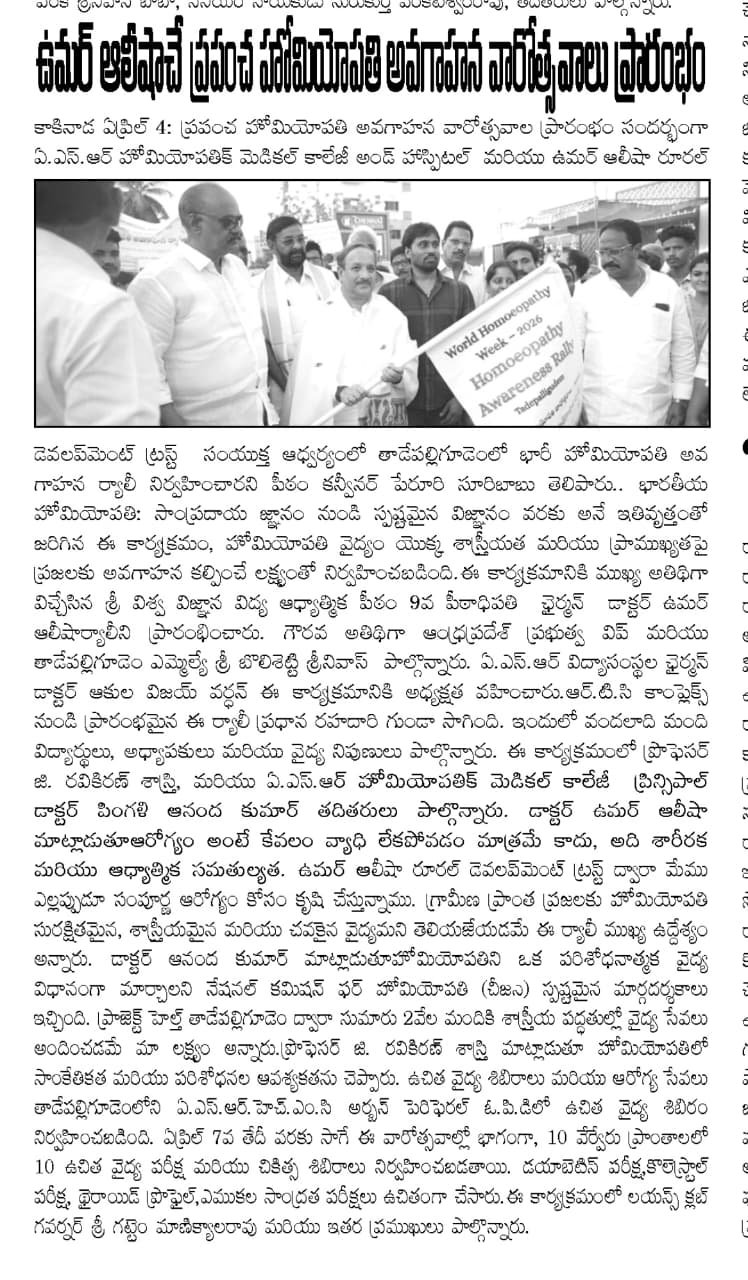 ఘనంగా ప్రపంచ హోమియోపతి అవగాహన వారోత్సవాలు ప్రారంభం