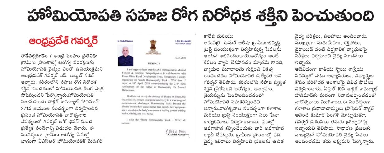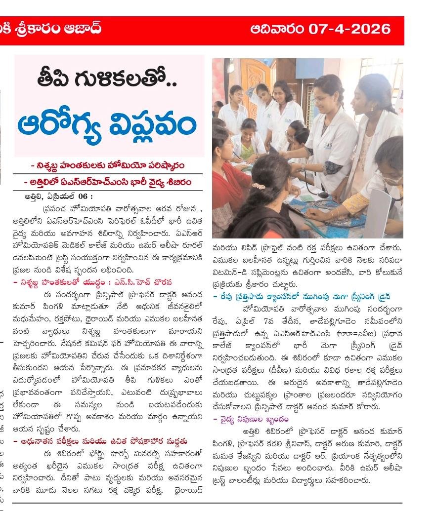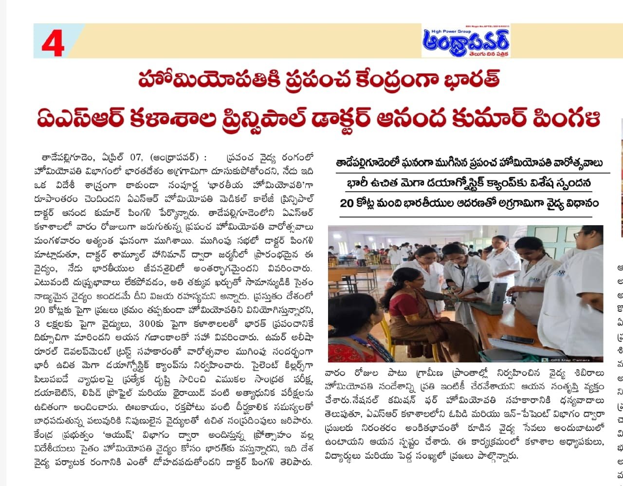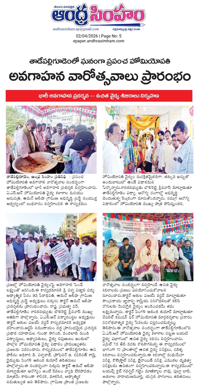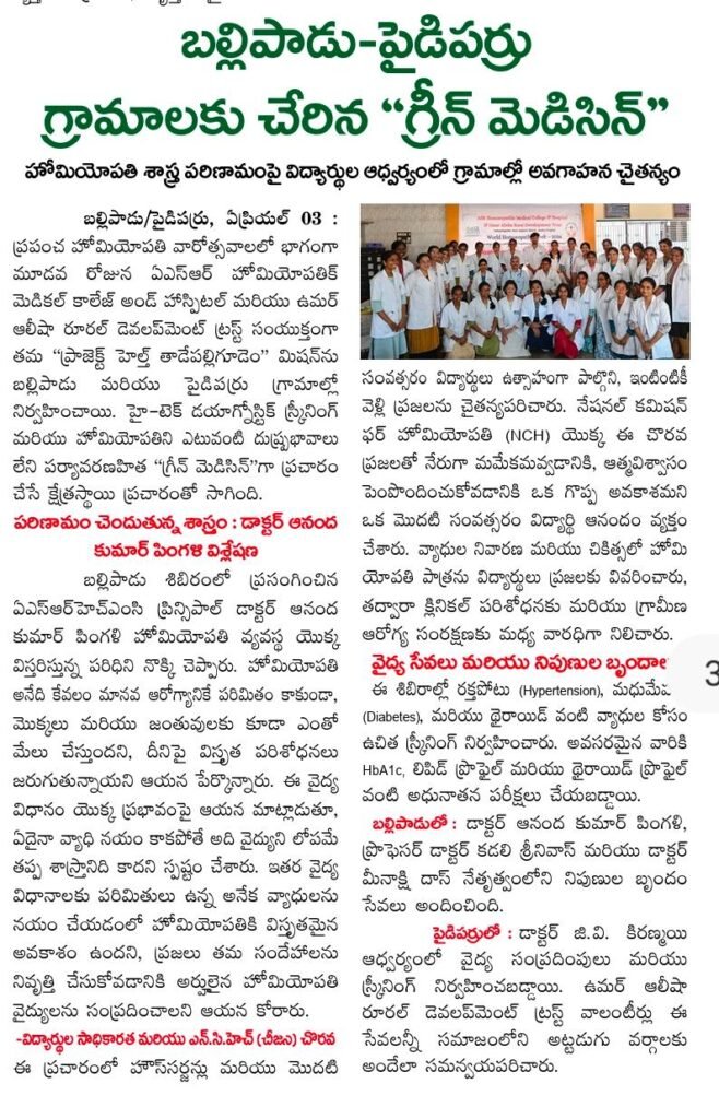 ఘనంగా ప్రపంచ హోమియోపతి అవగాహన వారోత్సవాలు ప్రారంభం