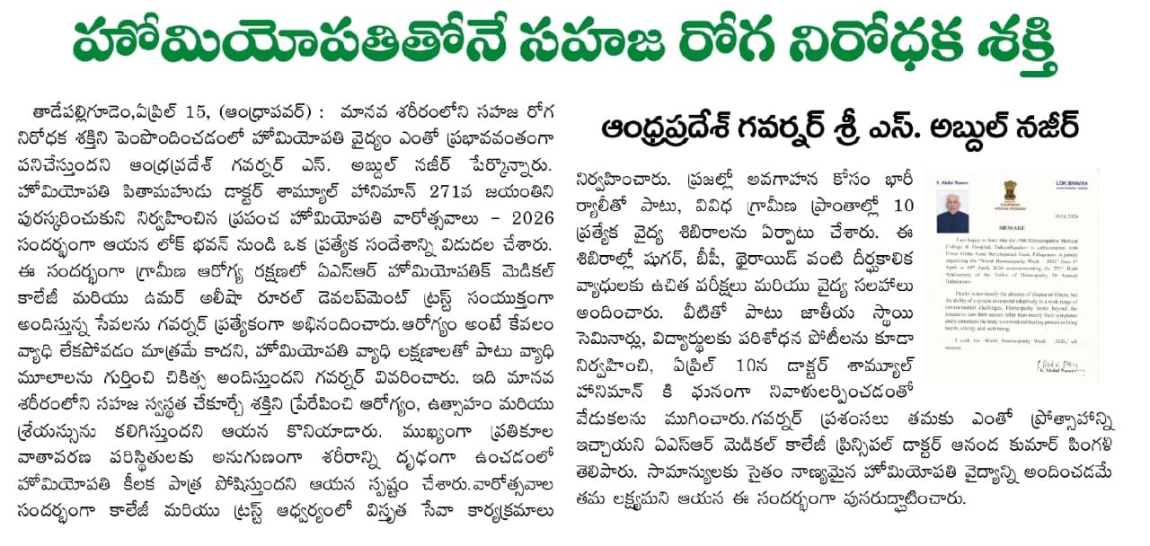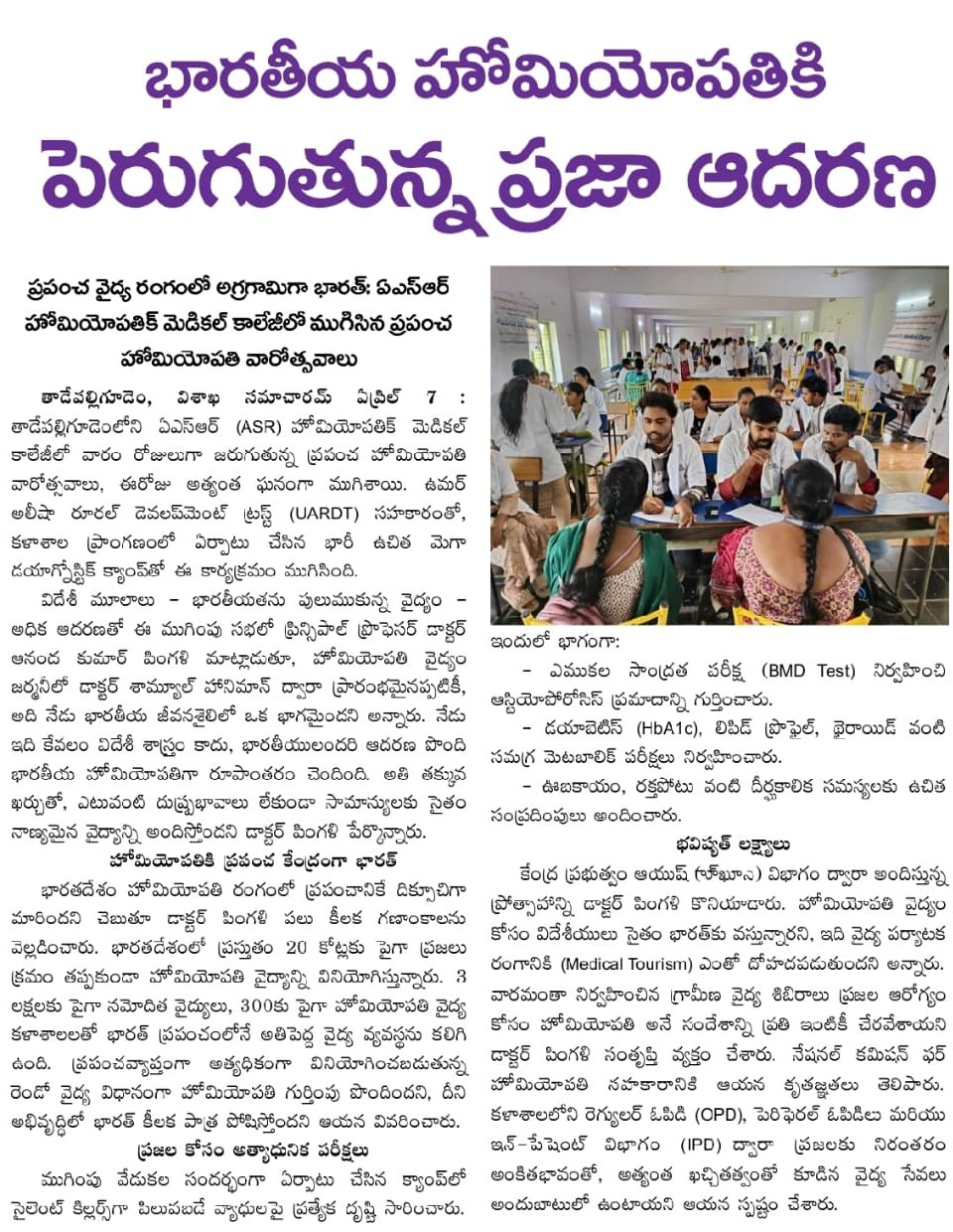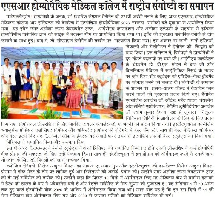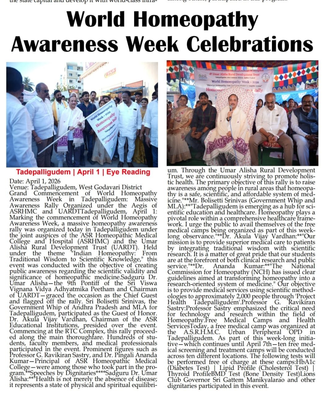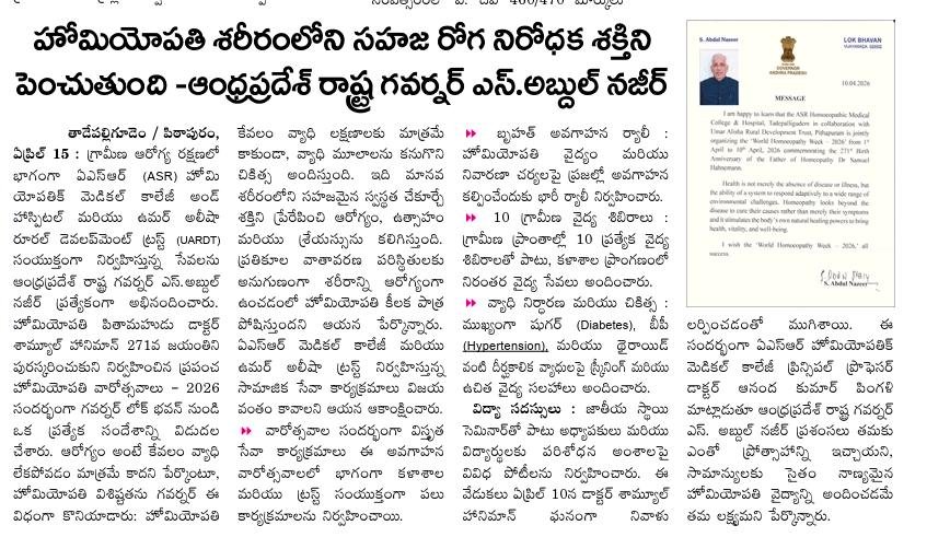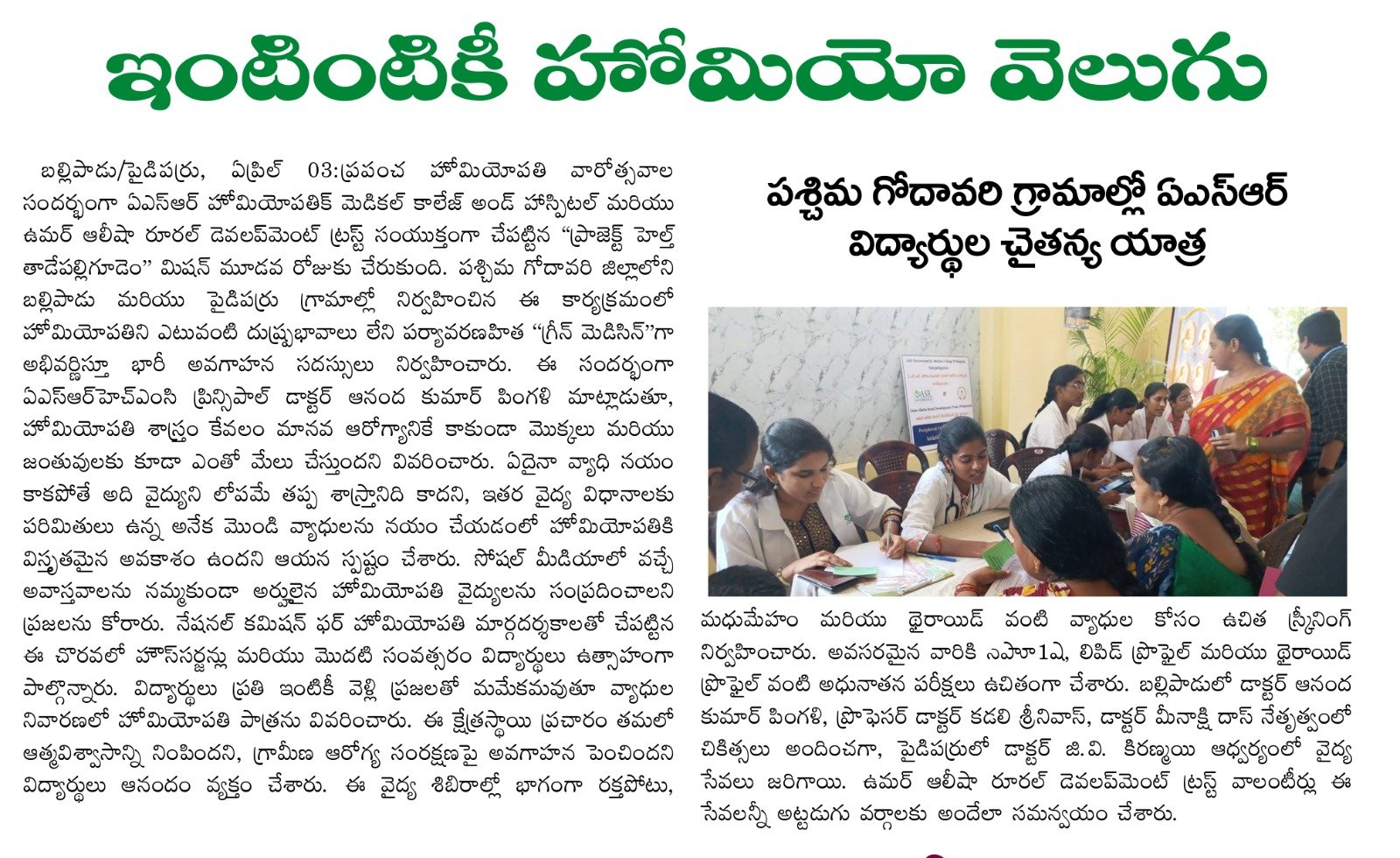 ఘనంగా ప్రపంచ హోమియోపతి అవగాహన వారోత్సవాలు ప్రారంభం