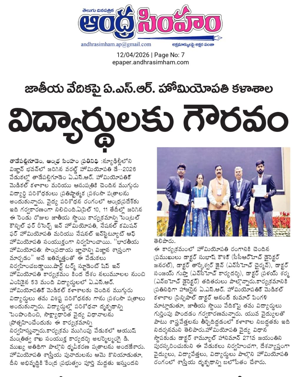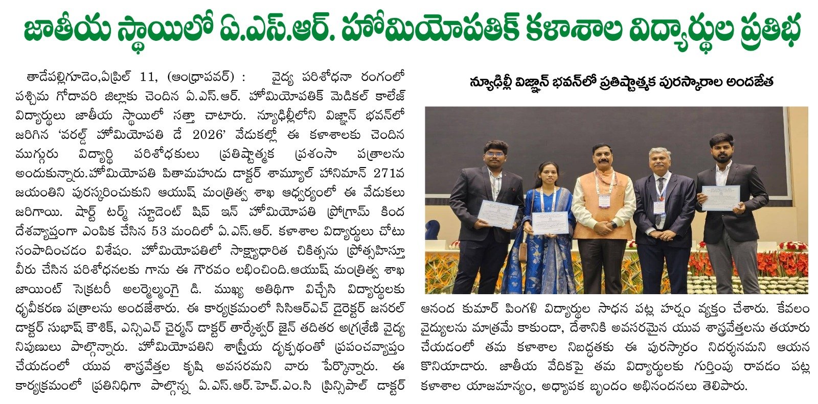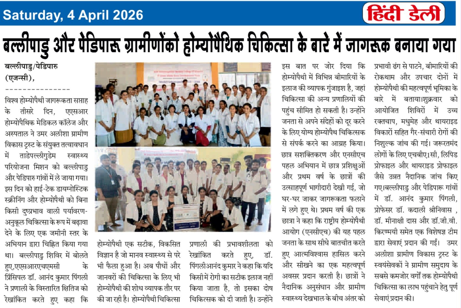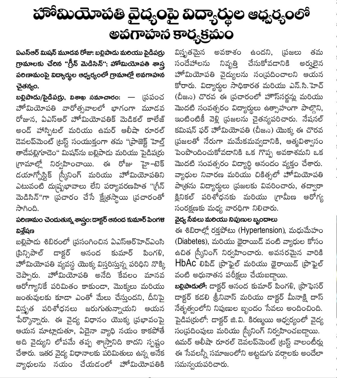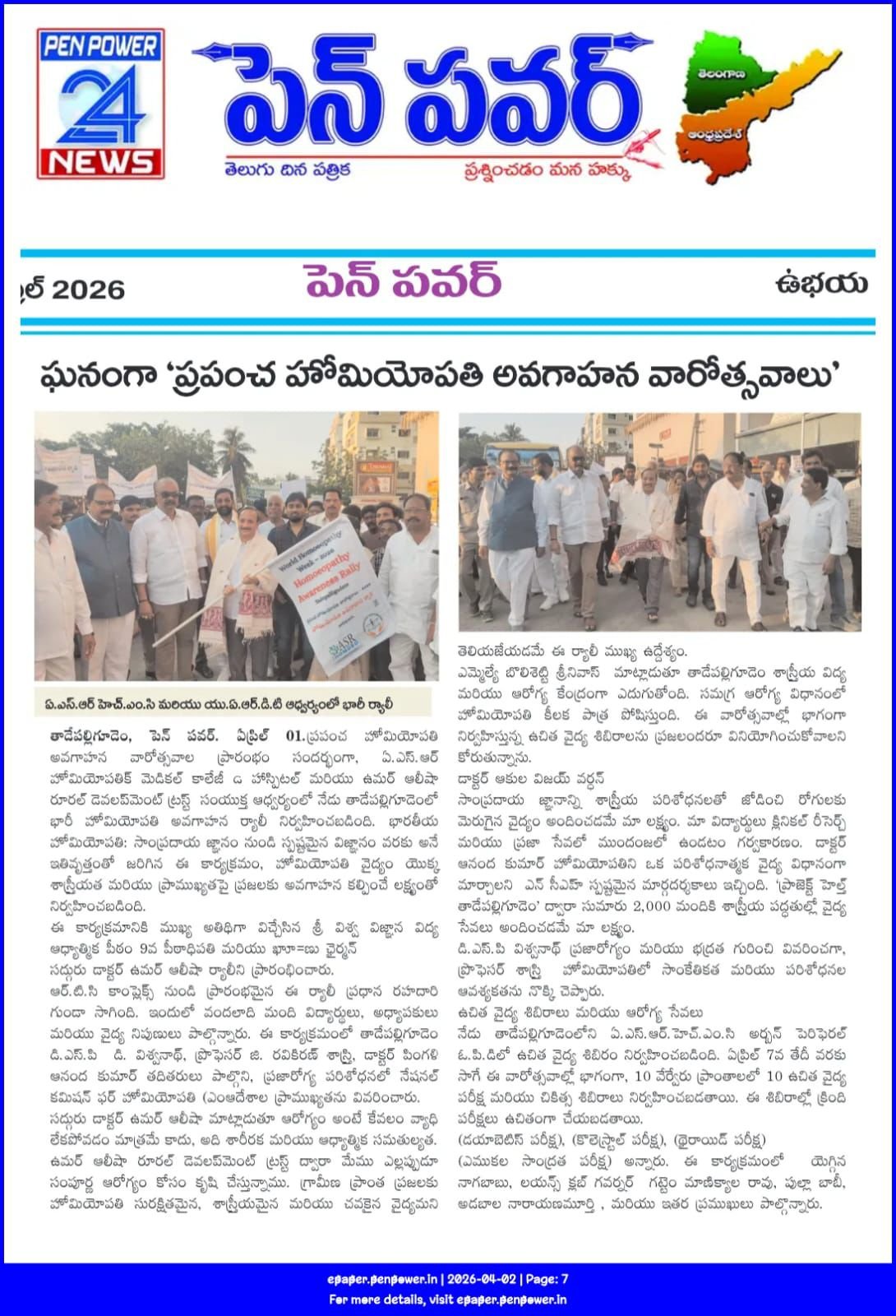 ఘనంగా ప్రపంచ హోమియోపతి అవగాహన వారోత్సవాలు ప్రారంభం