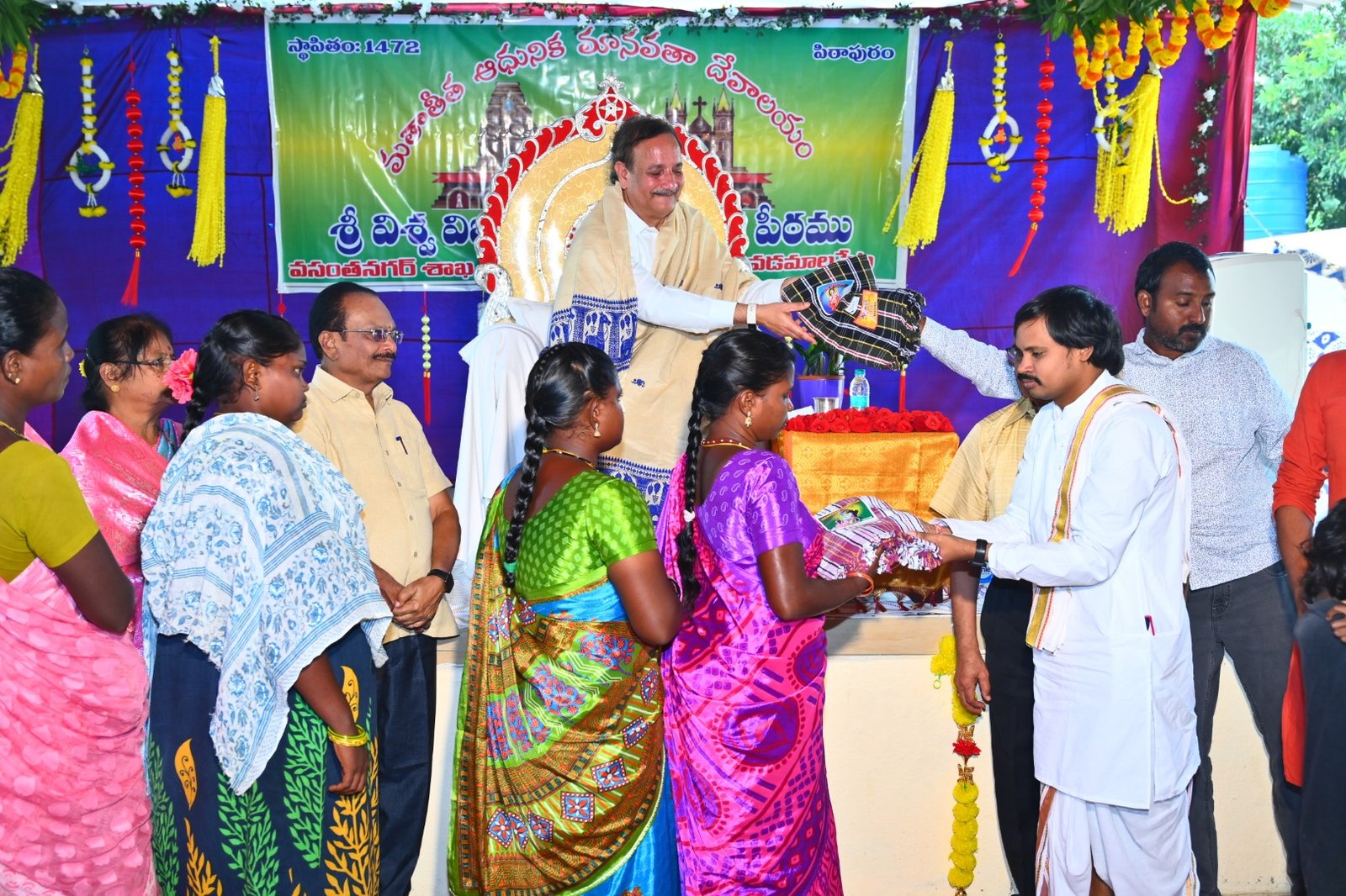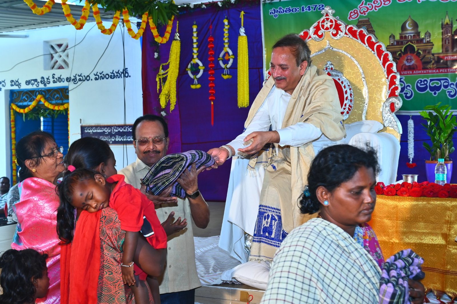 On 16 November 2025, blankets and sarees were distributed to needy women at the Karthika Masam Spiritual Knowledge Mahasabha organized by Sri Vishwa Vigyan Vidya Spiritual Peetham, Tirupati – Vasant Nagar Branch through Umar Alisha Rural Development Trust. School kits were also provided to students.