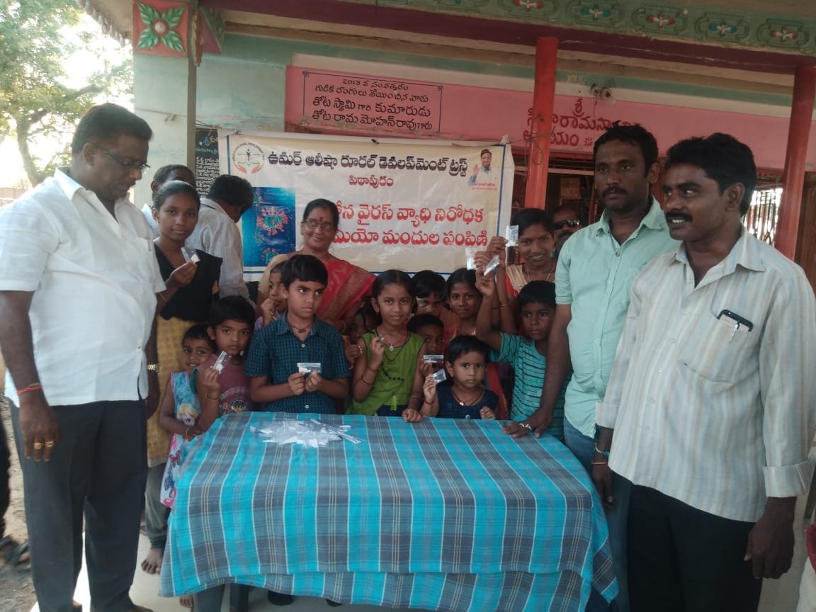 Umar Alisha Rural Development Trust has distributed Coronavirus preventive Homeo medicine for free to 700 people at Kapu Ramalayam, Kakarlamudi Village on 15-March-2020.