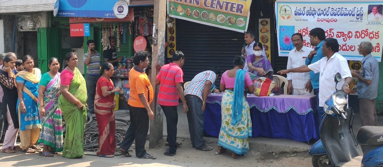 Umar Alisha Rural Development Trust has distributed Coronavirus preventive Homeo medicine for free to 8700 people at Kurupam Market, Visakhapatnam on 16-March-2020.