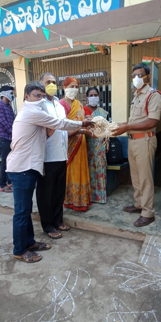 పైడిపర్రు గ్రామ సచివాలయ సిబ్బందికి, వర్డ్ వాలంటీర్లకు, పారిశుధ్య కార్మికులకు 100 మాస్కులు పంపిణీ చేశారు.