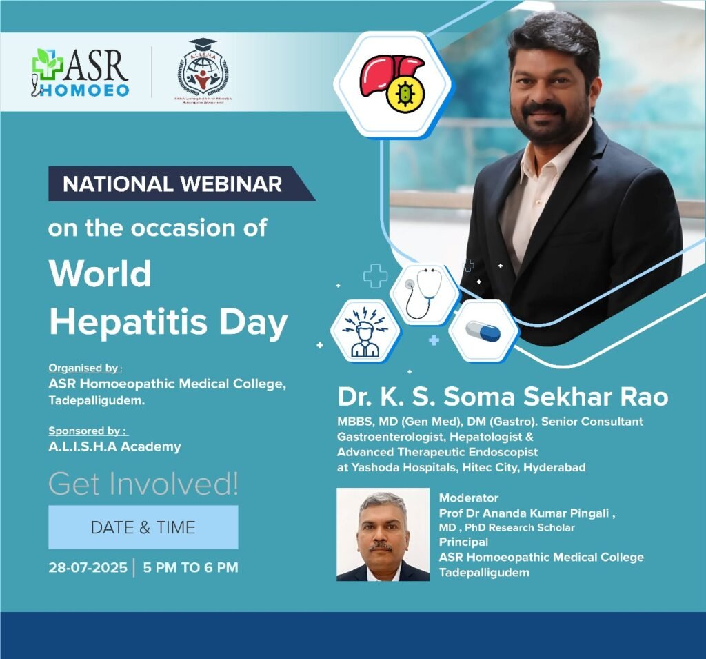 World Hepatitis Day 2025, Organised by ASR Homoeopathic Medical College & Hospital , Tadepalligudem